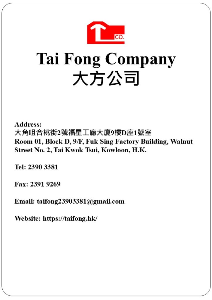 Address: Room 01, Block D, 9/F, Fuk Sing Factory Building, Walnut Street No. 2, Tai Kwok Tsui, Kowloon, H.K.