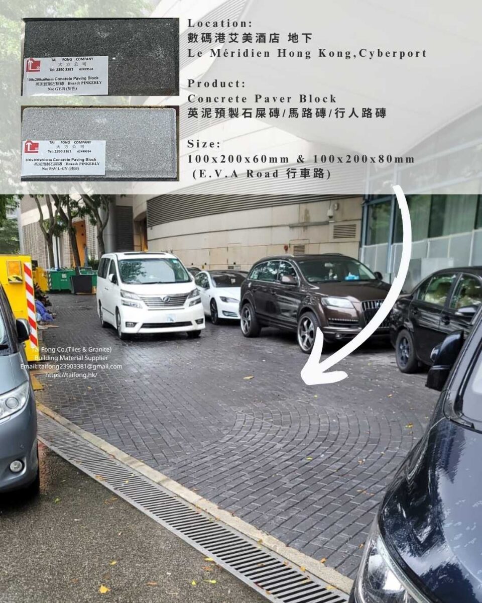 Job reference: 數碼港艾美酒店 地下 Le Méridien Hong Kong,Cyberport Product: Concrete Paver Block英泥預製石屎磚/馬路磚/行人路磚Size: 100x200x60mm & 100x200x80mm