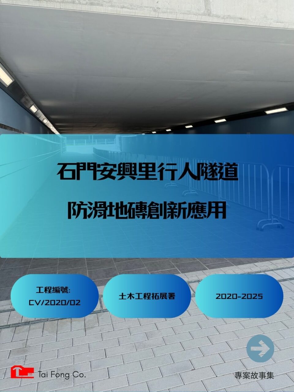 工程案例 | 石門安興里行人隧道防滑地磚工程 Project Case | Shek Mun On Hing Lane Pedestrian Subway Anti-slip Tile Project 項目概覽 | Project Overview 項目名稱 | Project Name: